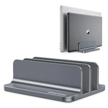 Introducing the OMOTON Updated Dock Version Vertical Laptop Stand, the ultimate solution for tech enthusiasts aimed at elevating both workspace functionality and aesthetics. This sophisticated stand is meticulously crafted from high-quality anodized aluminum, designed to securely accommodate up to two laptops or tablets while enhancing your desk's elegance. Featuring a sleek grey finish, it complements any environment—be it home, office, or school—making it suitable for...