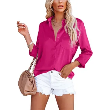Show moreStep into style with the OMSJ Women's Button Down Satin V-Neck Shirt, the quintessential blend of elegance and comfort for today’s modern woman. This versatile shirt not only makes astrong fashion statement but also promises all-day comfort, effortlessly transitioning from casual get-togethers to dressy occasions. Made from a high-quality, lightweight fabric, every inch of this stylish blouse is designed to enhance your look while keeping you feeling fabulous. The breathable nature of the fabric keeps you comfortable throughout the day, making it an essential addition to your wardrobe.