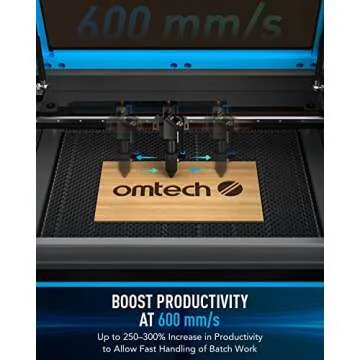 The robust design also includes a honeycomb work surface that guarantees stability, ensuring that every engraving or cutting task is done with a solid base. Weighing in at 187 lb, similar to a sturdy bookshelf, the OMTech laser engraver stands equipped to handle extensive operations while maintaining durability. It's the perfect addition to any home workshop or professional environment.
