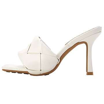 Omysky Womens Square Open Toe Heeled Woven Leather Mule Sandals Stiletto Slip On Quilted High Heel Shoes
