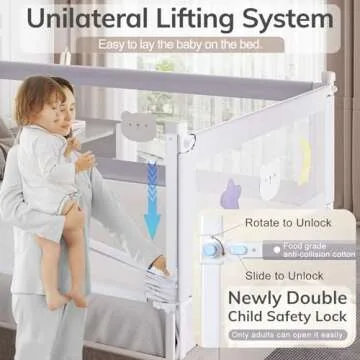 Show more Introducing our newly designed Toddler Bed Rail that is revolutionizing the way parents ensure their child's safety when transitioning from a crib to a bed! Crafted with a double-side lock mechanism, this bed rail is perfect for keeping your little one secure throughout the night. The design allows only adults to easily open it, ensuring that your child remains protected while they sleep.