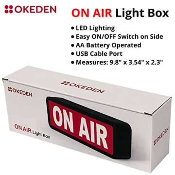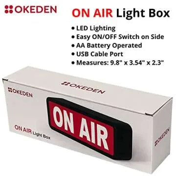 Show more The ON AIR LED Sign is the ultimate accessory for anyone who wants to elevate their workspace or studio. Its classic and timeless design not only ensures that it grabs attention, but its simple elegance lets others know exactly when you're busy and should not be disturbed. With this sign, you can project a professional and polished image, whether you’re recording a podcast, live streaming video games, or simply taking important calls. The bright illuminated recording light stands out brilliantly against its sleek casing, making it a fantastic choice for both personal use and gifting.