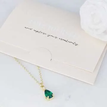 On palette Birthstone Pendant Handmade Gold Plated Necklace Gift Jewelry for Women/Wife, Girlfriend, Sister, Mom, Friend/Anniversary Birthday Gift Ideas (05.May-Emerald)