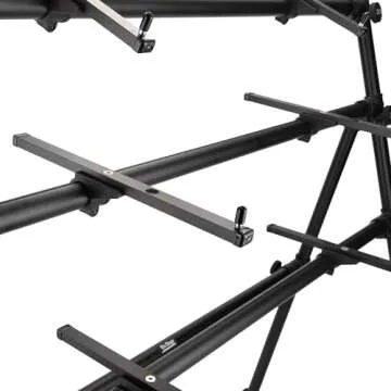 Equipped with adjustable features, the stand’s three tiers come with independently adjustable support bars, allowing you to hold keyboards of varying lengths comfortably. Performance stability and balance are never compromised, ensuring that you can play freely without worrying about your instruments shifting or wobbling during a set. Each tier is ergonomically designed, with the height and tilt angle being adjustable independently, catering to the ergonomic needs of diverse keyboard types, including synths, organs, electric pianos, and MIDI controllers.
