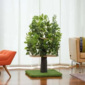 On2 Pets 4ft Cat Tree with Leaves Made in USA, Cat House & Cat Activity Tree, Two-Level Cat Condo for Indoor Cats