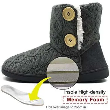 ONCAI Women's Slippers Comfort Knit Boots Winter Warm Outdoor Indoor Shoes All Gray Size 5-6