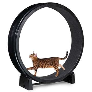 One Fast Cat - Cat Exercise Wheel - Gen. 7 - Safe 48" Diameter - Made in The USA - Black Wheel with Black Felt Traction Pads and Solid Black Inline Wheels