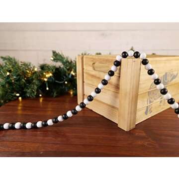 Show moreIntroducing the **One Holiday Way 9-Foot Long Rustic Matte Black and White Wood Bead Garland**, an exquisite addition to your home décor that effortlessly marries elegance with charm. Featuring vintage-style wooden beads that are meticulously crafted into a stunning arrangement, this garland not only enhances your Christmas tree but also serves as a versatile decorative piece for any occasion throughout the year. Each bead, measuring 1/2-inch, combines a classic matte white and profound black, designed to evoke a timeless aesthetic, drawing inspiration from rustic farmhouse aesthetics and modern chic designs alike.