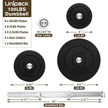 The adjustable feature means you can easily change weights from 5lbs to a massive 100lbs for each dumbbell. This versatility challenges your muscles and allows you to progressively overload as you grow stronger. Each set consists of one textured solid chrome handle, two collars (5 lbs), eight 10 lbs plates, two 5 lbs plates, and two 2.5 lbs plates, making it perfect for customizing your workout with ease.