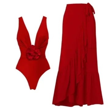 Show more Introducing the exquisite One Piece Swimsuit with Swim Cover Up Sarong Wrap Skirt, designed for the modern woman who embraces style and comfort. This bathing suit set not only features a striking deep V neck, but also offers tummy control for a flattering silhouette. Crafted with a vibrant retro floral pattern, this swimsuit is available in more than eight chic styles. The included dark red cover-up skirt provides versatility, making it perfect for a day at the beach or a sunny poolside gathering. Whether you’re enjoying a tropical vacation or having a fun day at the water park, this swimsuit ensures you stand out with confidence.