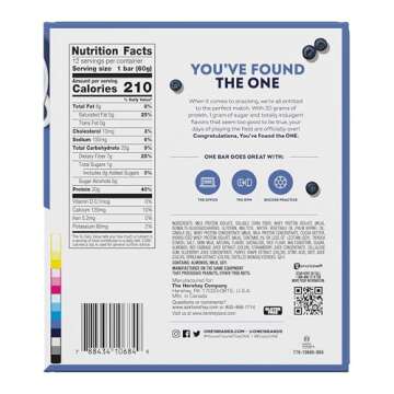 ONE Protein Bars, Blueberry Cobbler, Gluten Free with 20g Protein and 1g Sugar, Pantry Staples, 2.12 oz (12 Count)