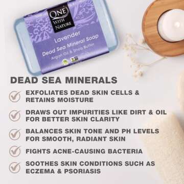 One With Nature Dead Sea Salt Lavender Soap 4oz Bars 3Pack - Dead Sea Salt Contains Magnesium, Sulfur & 21 Essential Minerals - Ideal for All Skin - Shea Butter, Argan Oil Enriches, Natural Fragrance