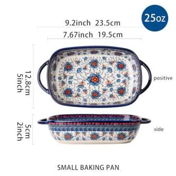 ONECCI Baking Dish Ceramic Baking Pan Blue Casserole Dish Rectangular Baking Set 2pcs Bakeware Sets Lasagna Pan Baking Dishes for oven (Blue plasma grass)