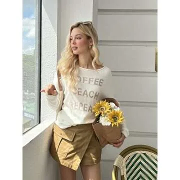 Onedreamer Womens Sweater Casual Crew Neck Long Sleeve Coffee Beach Repeat Pullover Top