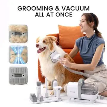 Show more Introducing the ultimate solution for pet grooming enthusiasts and proud pet parents - the oneisall Pet Grooming Kit with Vacuum function. Say goodbye to the mess and hassle of traditional grooming tools, and hello to a revolutionary grooming experience that collects 99% of pet hair into a built-in vacuum container. This 7 in 1 Pro Pet Grooming Kit includes everything you need to keep your furry friend looking their best while maintaining a clean and tidy home. Whether you're a seasoned groomer or a novice, this kit makes home grooming a breeze, eliminating the need for expensive trips to professional groomers.