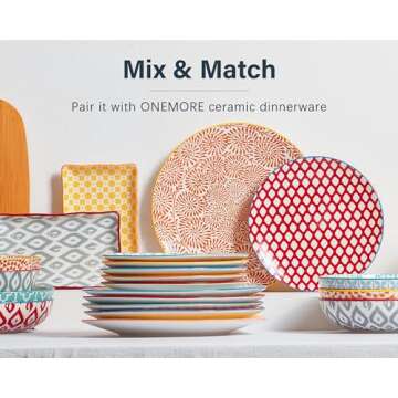 When comparing the ONEMORE plates to other dinnerware options, it’s clear that these plates offer a unique combination of aesthetic appeal and functionality. While most plates serve their purpose, the ONEMORE Colorful Dinner Plates stand out due to their geometric design and scratch-resistant finish, which many competitor products lack. Unlike others, these plates are not just visually appealing but also exceptionally durable, ensuring they withstand daily use while maintaining their vivid colors.
