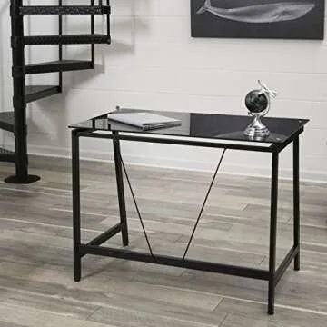 OneSpace Contemporary Glass-Top Desk for Small Spaces, Small Writing Desk, Black