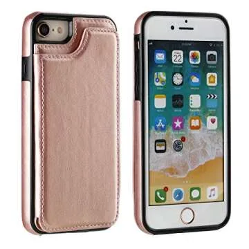 ONETOP for iPhone SE(2022) iPhone SE(2020) iPhone 7/8 Wallet Case with Card Holder, Premium PU Leather Kickstand Card Slots, Double Magnetic Clasp and Durable Shockproof Cover 4.7 Inch(Rose Gold)