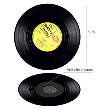 Introducing the ONFAMICO Vintage Vinyl Record Coasters, a set of six uniquely designed coasters that bring a touch of nostalgia and music culture into your home. Made for music lovers and designed with a classic vinyl record pattern, these coasters not only reflect a love for retro music but also come with a stylish vinyl player holder gift box, making them a perfect present for any occasion. Crafted with a non-slip and durable construction, they will safeguard your surfaces against spills and scratches,...
