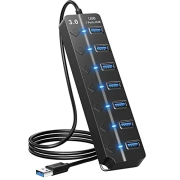 ONFINIO 7-Port USB Hub 3.0 with Individual On/Off Switches for Effortless Connectivity