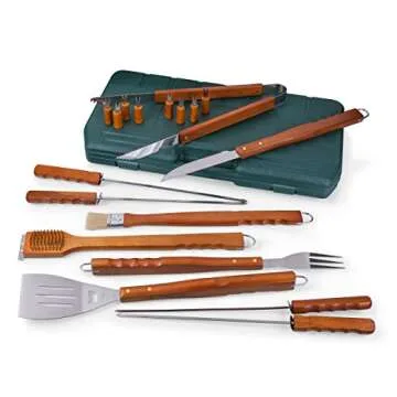 Show more Discover the ultimate companion for your outdoor cooking adventures with this 18-piece deluxe BBQ tool set by Oniva, a trusted brand from Picnic Time. This comprehensive set is designed for both novice and seasoned grill masters, ensuring that you have everything you need for a perfect BBQ experience. Each tool in the set is crafted from durable stainless steel, guaranteeing durability and longevity while cooking for family and friends.
