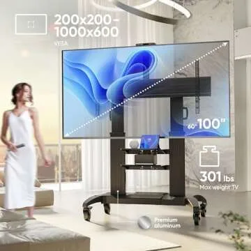 ONKRON Mobile TV Stand for 60-100 Inch TVs up to 301 lbs, Large & Heavy Duty TV Stand Height Adjustable max VESA 1000x600 - Mobile TV Cart Rolling TV Stand Tall/Portable TV Stand on Wheels