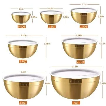 Onlycooker Gold Mixing Bowls With Airtight Lids,Stainless Steel Bowl,Salad Bowls 7 Piece Colorful Nesting Bowl Rainbow Kitchen Accessories,Size 7,3.6,2.7,2.1,1.5,1.1,0.8QT Stackable Design