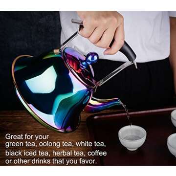 Onlycooker Whistling Tea Kettle Stainless Steel Stovetop Teakettle with Infuser Sturdy Teapot for Tea Coffee Fast Boiling Color Rainbow Mirror Finish 2 Liter / 2.1 Quart