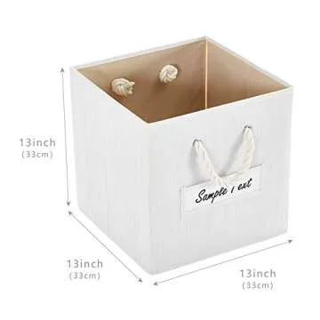 The bins measure 13 x 13 x 13 inches, perfect for fitting into standard cube shelves.