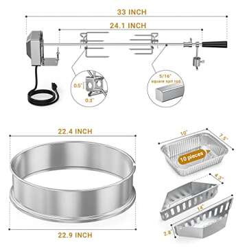 onlyfire Upgrade Stainless Steel Rotisserie Ring Kit for Weber 22-inch Kettle Charcoal Grills, Comes with Charcoal Baskets and 10 Pack Drip Pans