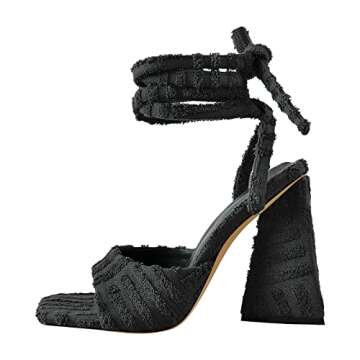 The chunky heel design not only serves a stylish purpose but also contributes to great stability while you stride confidently into any room. With open square toes and delicately designed lace-up ankle straps, these sandals are the epitome of fashion-forward footwear. Whether you're heading to a lively party or navigating a casual outing, every step taken will radiate your unique style and confidence.