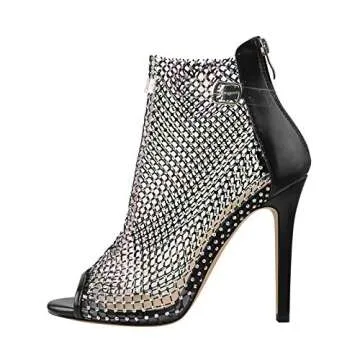 onlymaker Women's Stiletto High Heel Peep Toe Heeled Sparkly Fishnet Sandal Black Size 14