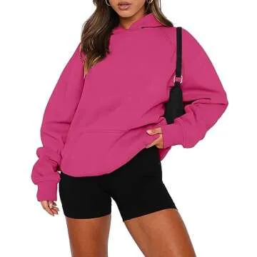 onlypuff Womens Oversized Hoodie Pullover Casual Sweatshirts Long Sleeve Fall Tops Rose Pink L