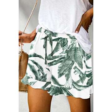 ONLYSHE Women's Comfy Drawstring Shorts Summer Retro Ruffle Hem Elastic Waisted Shorts Pants with Pockets WhiteGreen-S