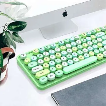 The mouse that accompanies this keyboard is small and deceptively comfortable, perfect for those who prefer a compact mouse while working. With a cute matching mousepad included, your workspace will hold a cohesive and charming appeal. Plus, the keyboard automatically enters sleep mode after a period of inactivity, preserving battery life to keep you going throughout the day without interruption.