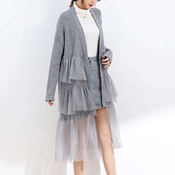 ONLYWOOD Women Sweet Tulle Layer Patchwork Knit Open Front Cardigan Sweater Long(Grey,Free)