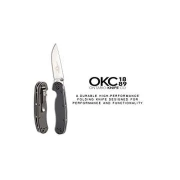 Ontario Knife Company Rat II, Satin AUS-8 Stainless Steel Drop-Point Blade Folding Pocket Knife, Black Nylon Handle Liner Lock Knife, Everyday Carry Knife – ON8860