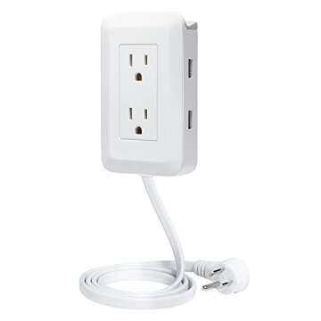 Designed with efficiency in mind, the product boasts two AC outlets and two USB ports, ensuring plenty of connections for your devices. Plus, its built-in phone holder means that you can charge your smartphone or other devices while keeping them neatly organized. This versatile outlet extender is perfect for use in various locations throughout your home, including the living room, bedroom, and home office.