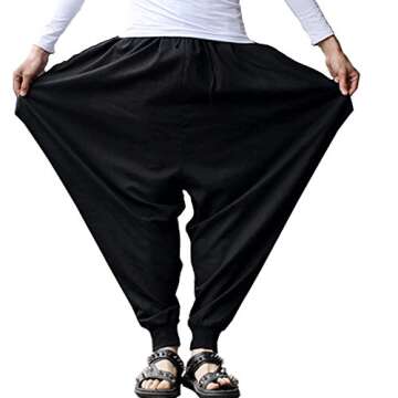 ONTTNO Men's Harem Pants Loose Stretchy Waist Casual Hippie Trousers (Black)