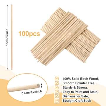 ONUPGO 100PCS Wooden Dowel Rods - Perfect for Crafts and DIY Projects!