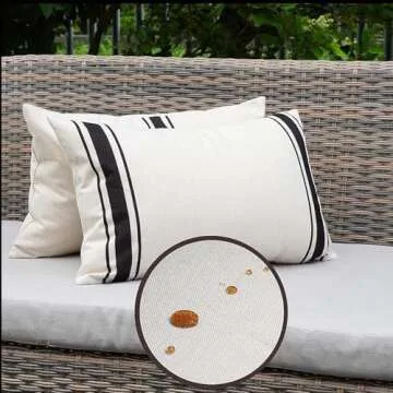 Show more Introducing the ONWAY Outdoor Pillow Covers, a perfect blend of functionality and style. This set of 2 carefully designed lumbar throw pillow covers measures 12 x 20 inches, providing the ideal fit for various outdoor and indoor spaces. Crafted from high-quality waterproof linen material, these pillow covers are not only durable but also offer exceptional resistance against stains and fading, ensuring your decor stays vibrant through all weather conditions. While the insert or filler is not included, the elegant stripe pattern coupled with a hidden zipper design elevates the aesthetic of your space, making them a stunning addition to your furniture.