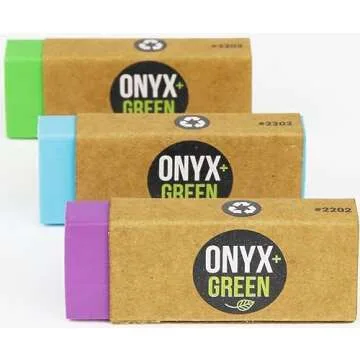 Onyx and Green 3-Pack Erasers with Sleeve, Recycled Rubber (2202)
