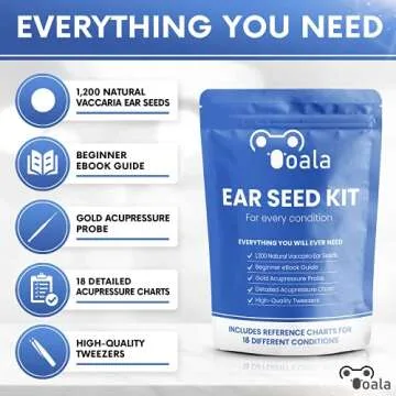 The Ooala Multi-Condition Ear Seeds Acupuncture Kit is your comprehensive gateway to the world of auriculotherapy, perfectly designed for both beginners and seasoned wellness enthusiasts. This kit stands out with its extensive inclusions, ensuring you have everything you need right at your fingertips for effective at-home use. Imagine having access to 1200 high-quality ear seeds, meticulously sourced from humanely harvested vaccaria plants. Alongside, the kit features 18...