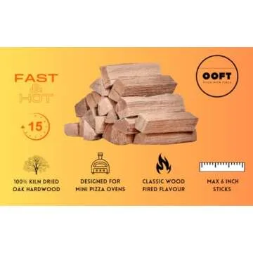 Show moreIntroducing the OOFT Pizza Oven Wood, your ultimate companion for achieving the perfect wood-fired pizza right in your backyard. Designed for use in all popular portable pizza ovens, including the Ooni Karu 12 & 16, Solo Stove Pi, and Gozney Roccbox, these 6-inch sticks of 100% natural kiln-dried oak are specifically crafted to enhance your cooking experience. Say goodbye to mediocre pizza and hello to the delightful aroma and rich flavor that only the finest hardwood can deliver. With a weight of 12-14lbs, our wood is the ideal size for convenience and optimum heat creation.