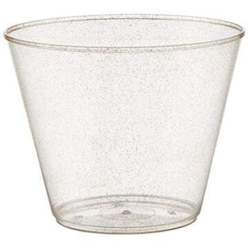 Oojami 100 count Gold Glitter 9 oz Party Cups Old Fashioned Tumblers