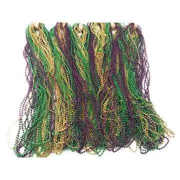 Oojami 144 PCS Mardi Gras Beads Green Purple Gold Metallic Beads Necklaces Accessories BulkCarnival Beads Necklace for Parade Throws Party Decorations Supplies Favors