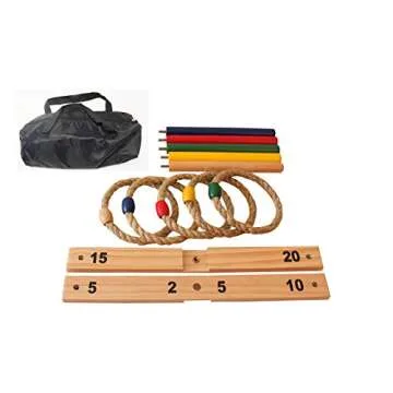 Show moreBring excitement to your outdoor gatherings with the Oojami Ring Toss Game! This family-friendly version of the classic quoits game is perfect for both children and adults, offering a fun and competitive way to engage with friends and family. Designed with high-quality wooden construction, this game is built to last for countless hours of entertainment. Whether it's a day at the park, a backyard barbecue, or a picnic by the beach, the included compact carrying bag ensures easy transportation and setup.