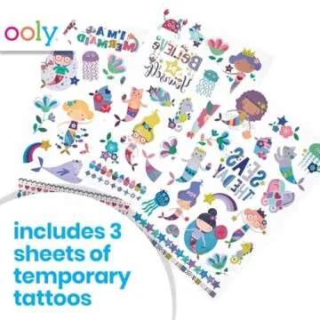 Ooly 50 Temporary Tattoos For Kids, Safe & Non-Toxic Temporary Tattoo, Party Favors for Kids 4-8, Great Goodie Bag Stuffers & Fun Birthday Decorations - Mermaid Magic
