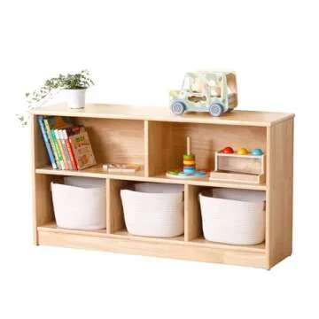 OOOK Rubber Wood 5-Compartment Montessori Shelf, 43.3" L, 2-Tier Toy Organizers and Storage, Wooden Storage Cabinet for Kids Room, Playroom, Nursery, Classroom, Kindergarten