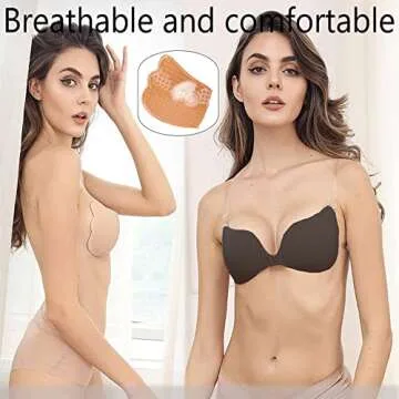Ooosonlu Stick on Bra Invisible Strapless Sticky Bra Push Up Sticky Bra Adhesive Bras Strapless Bras for Women, Backless Strapless Bra